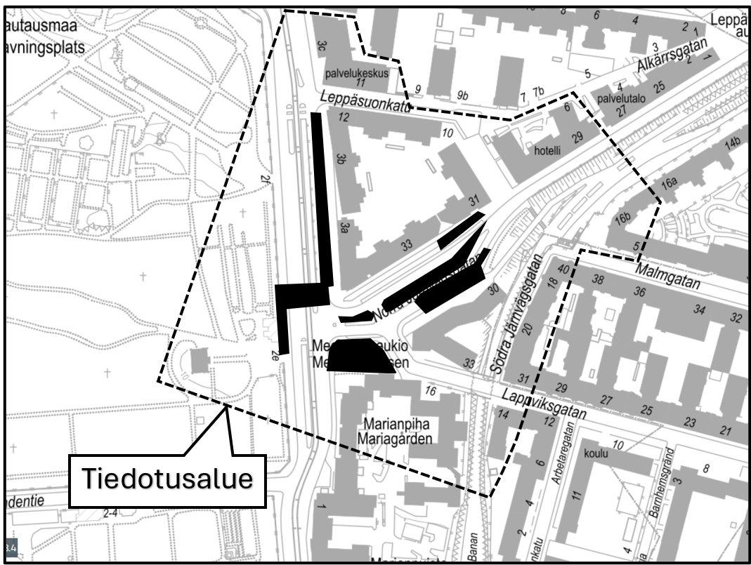 Lisäksi tiedote tulee toimittaa alueen asukasyhdistyksille Töölö-Seura ry:lle ja Töölön kaupunginosat - Töölö ry:lle.