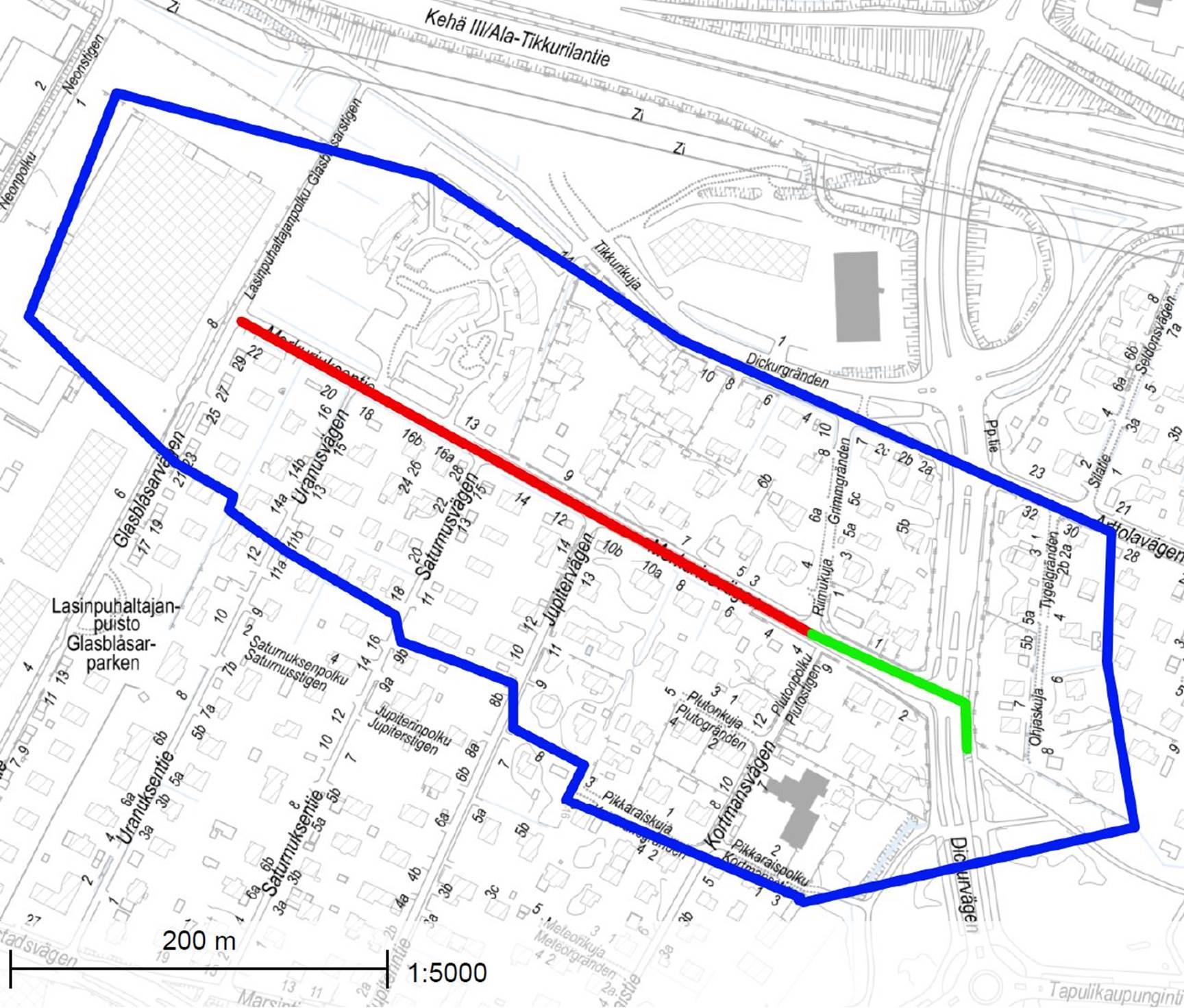 Ilmoituksen liitekartan perusteella paalutusta ja pontitusta tehdään Merkuriuksentiellä ja pontitusta Merkuriuksentien ja Tikkurintien risteyksessä. Töitä on tarkoitus tehdä arkisin maanantaista perjantaihin kello 7.00 - 18.00